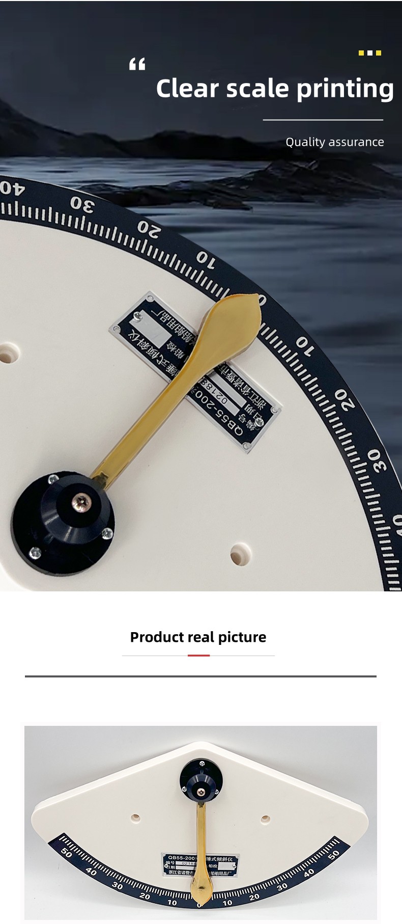 Single tube clinometer with a bubble type spirit filled glass tube on a 160*35*25mm plastic graduated panel.