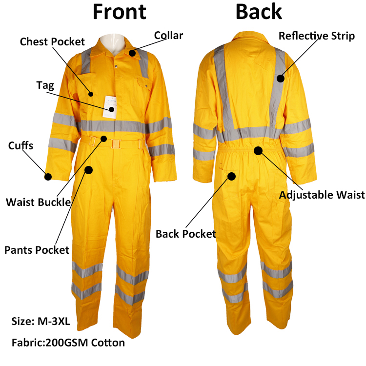 IMPA 190501-65 YELLOW REFLECTIVE STRIP SAFETY WORKING COVERALLS