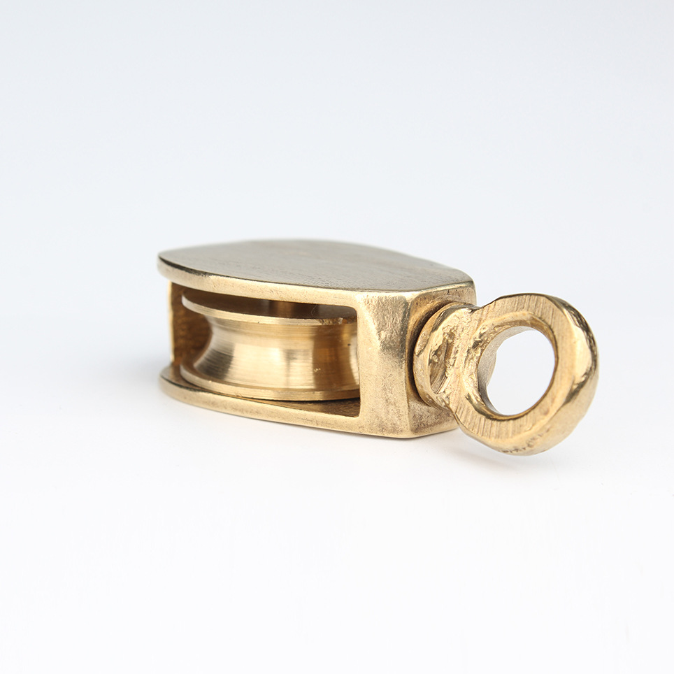 Cast brass flag line blocks covered by a semi-circle guard with an eye on top.